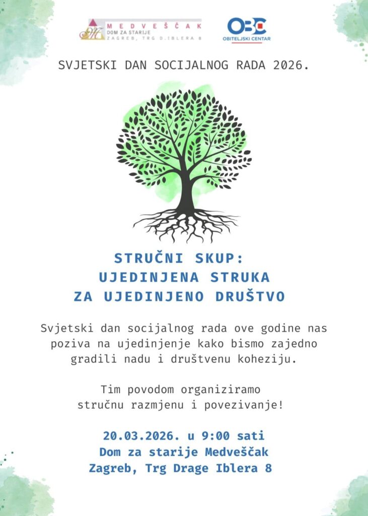 Stručni skup: Ujedinjena struka za ujedinjeno društvo, održao se dana 20.03.2026. godine povodom Međunarodnog dana socijalnog rada, u organizaciji s Obiteljskim centrom Zagreb.